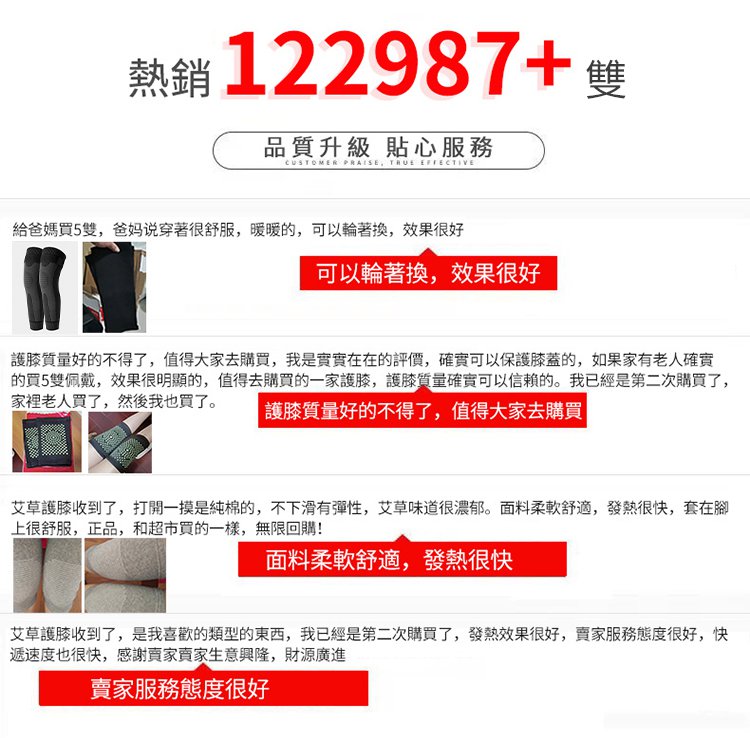 7分鐘前爆款艾草護膝 真正加倍保暖護膝,四季通用,老寒腿、關節涼、膝部不適專用! - 買三送三【6雙】NT$1098 均價183/入,免運